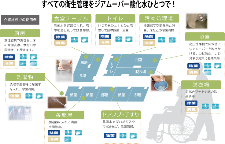 ◆ザッと流す(流水) 嘔吐物の処理(各種ウイルス対策)・床・食器類・食品工場・厨房内、ゴミステーション、店舗、宿泊施設、テーマパーク |